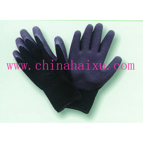 DESCRIPTION: 10-gauge black acrylic knit shell, Black natural latex palm and fingertip coated, foam finish