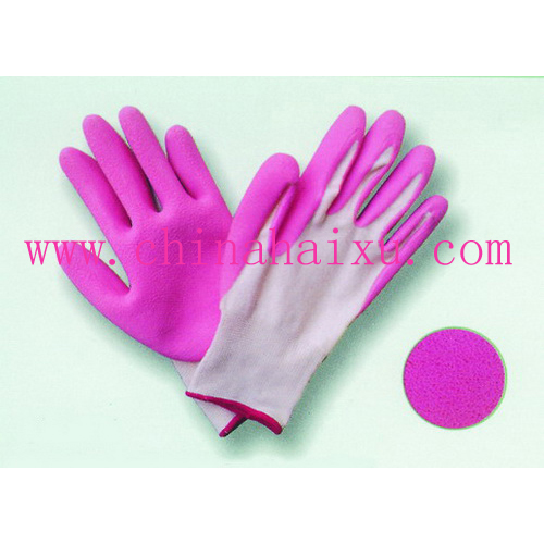 DESCRIPTION: 13-gauge white Nylon knit shell, Pink natural latex palm and fingertip coated, foam finish