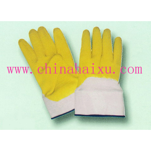 DESCRIPTION: Yellow natural latex fully coated, white cotton jersey liner, safety cuff, Moire finish